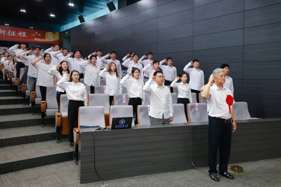 计算机与信息工程学院党委副书记、院长刘树东带领新发展党员代表面向鲜红的党旗庄严宣誓,字字铿锵的宣誓声穿透会场。“我志愿加入中国共产党” 的誓言掷地有声,表达了他们加入中国共产党的坚定决心,许下了对党忠诚,不负人民的郑重承诺。在场的同志深受鼓舞与教育,整个会场涌动着 “以信仰之光照亮新征程”的澎湃力量,激励全体同志以更坚毅的步伐书写践行初心的答卷。