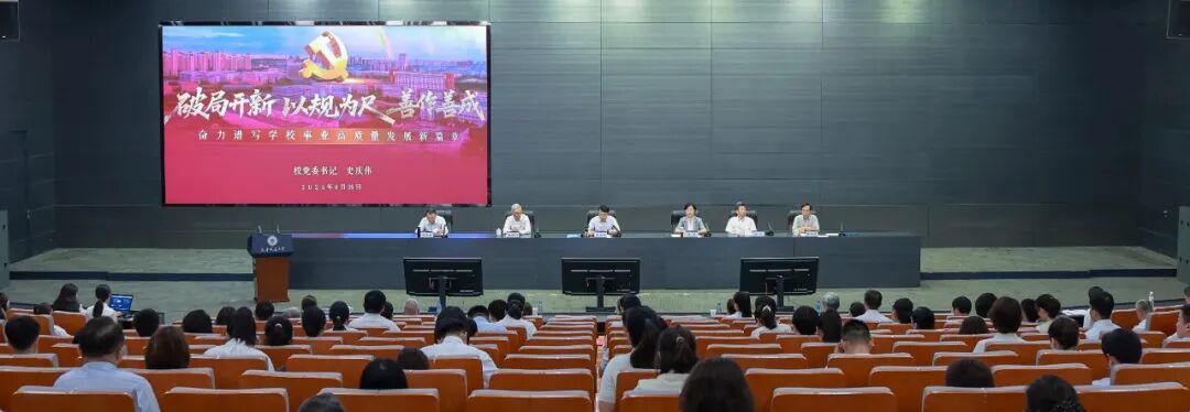 会后,史庆伟以《深入贯彻中央八项规定精神 以优良作风推动学校事业高质量发展》为题,从三个方面为全体师生党员干部讲授党课。一是深学细照、知行合一,深刻把握学习教育的重大意义和实践要求。教育引导广大师生党员深刻领会学习教育的重大意义,精准锚定任务目标,为确保学习教育取得扎实成效、推动全面从严治党向纵深发展提供思想根基和行动遵循。二是以案为鉴、精准施治,以学习教育为契机推动学校作风建设见行见效。深入浅出为大家讲解中央和地方通报的典型案例和高校系统内部易发多发的风险点,督促党员、干部坚决反对特权思想和特权现象,树牢正确权力观、政绩观、事业观,坚持以系统思维一体推进党风政风、师德师风、校风学风建设,全力营造风清气正的校园政治生态与优质育人环境,守护教育事业的神圣净土。三是作风破局、改革攻坚,以学习教育新成效赋能学校事业高质量发展。紧扣“立德树人”根本任务,以优良作风不断加强党的建设,深入推进学科建设和科技创新,持续打造高素质专业化的教师队伍,全面提升学校管理水平,让学习教育成果转化为优化治理、服务师生、推动事业高质量发展的实际效能。
