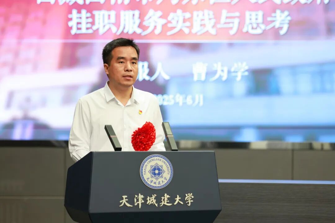 优秀共产党员荣誉称号获得者、中组部团中央第24批博士服务团成员、能源与安全工程学院副院长曹为学作为年轻干部代表,讲述了自己加入教育部博士服务团到西藏挂职锻炼,在雪域高原以“缺氧不缺精神”的顽强意志,用出色的工作业绩和科研实绩书写了津藏合作精彩故事。