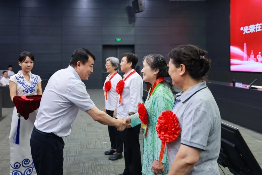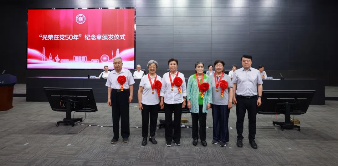 史庆伟为4名老党员颁发“光荣在党50年”纪念章,现场响起最热烈而持久的掌声,向老党员致以崇高的敬意和衷心的祝福。