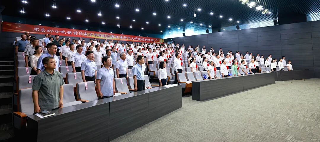史庆伟代表学校党委,向学校各级党组织和广大共产党员致以节日问候,向受表彰的集体和个人表示祝贺。他回顾了过去五年,学校各级党组织和广大党员干部师生守正创新、砥砺奋进,勇于担当、善作善成,推动学校高质量发展迈上新征程、结出新硕果,书写了硬核的“天城大答卷”。